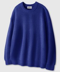 오버핏 볼륨 워셔블 크루넥 하찌 니트 [블루]