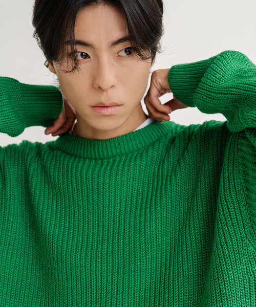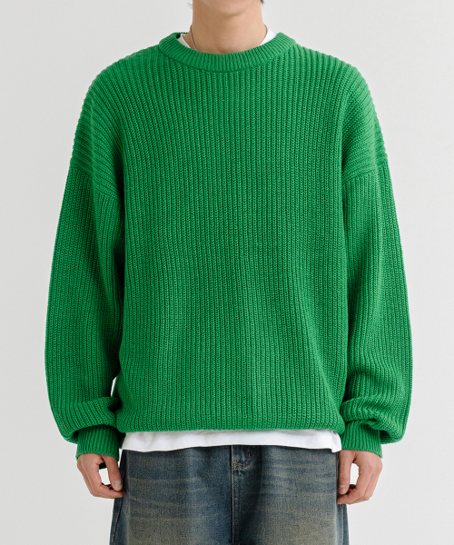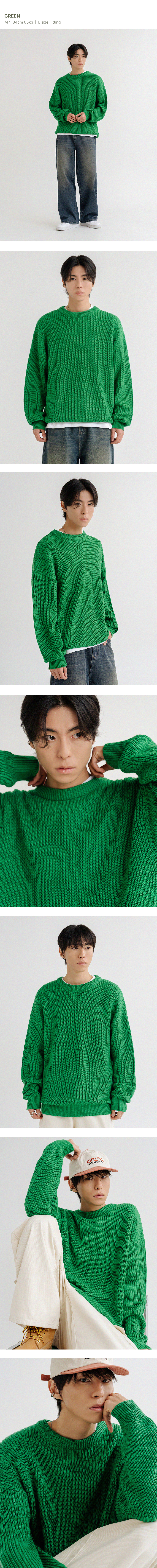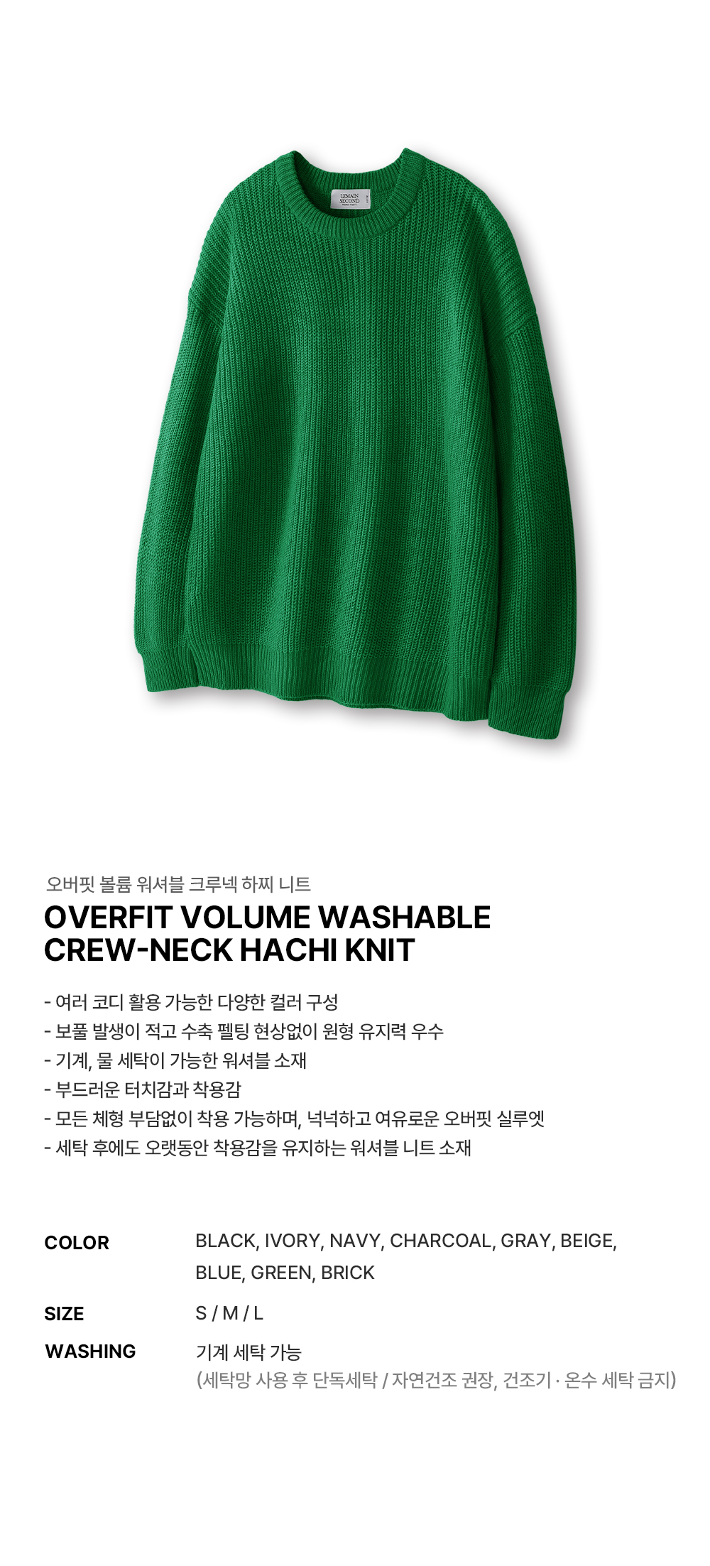 오버핏 볼륨 워셔블 크루넥 하찌 니트 [그린]