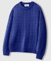 오버핏 볼륨 워셔블 크루넥 케이블 니트 [블루]