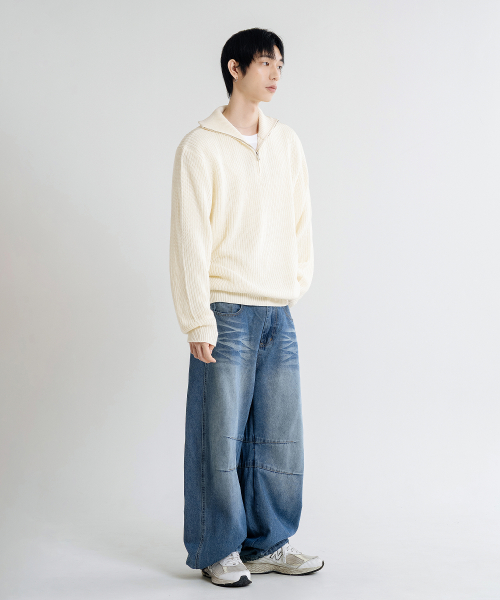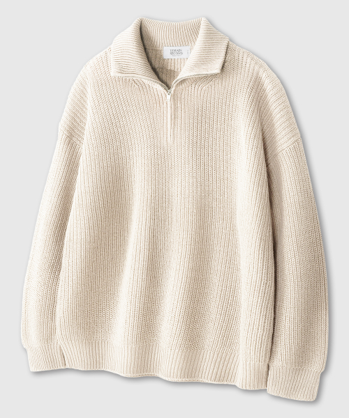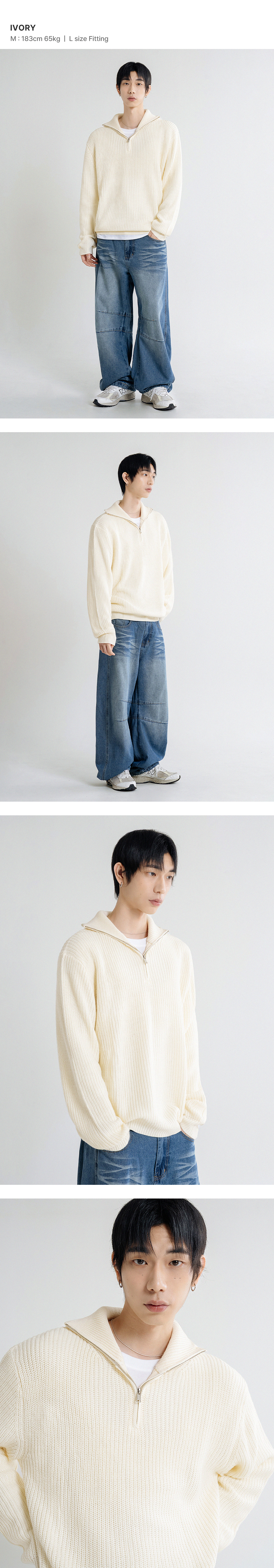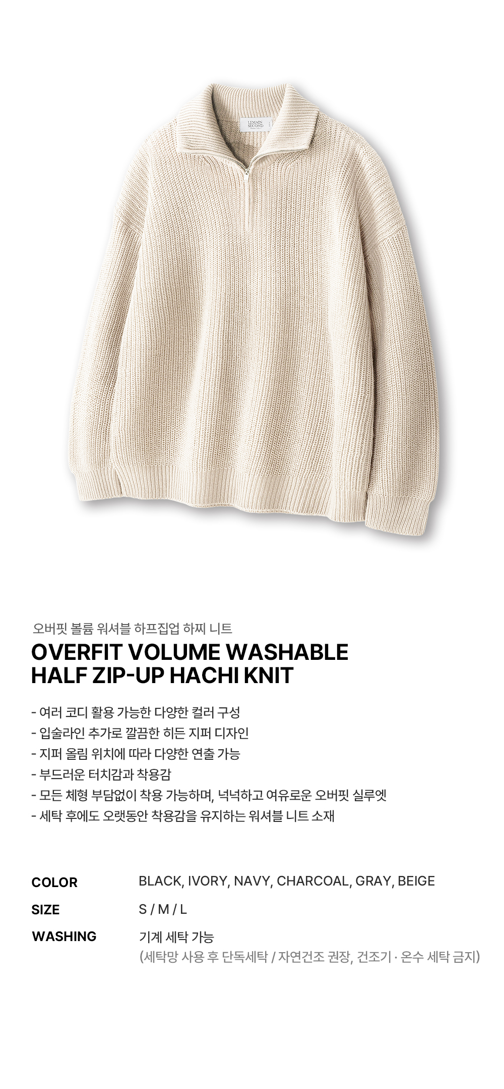 오버핏 볼륨 워셔블 하프집업 하찌 니트 [아이보리]