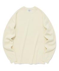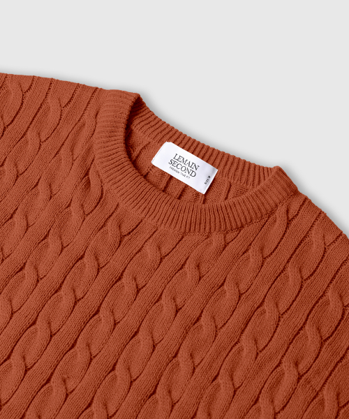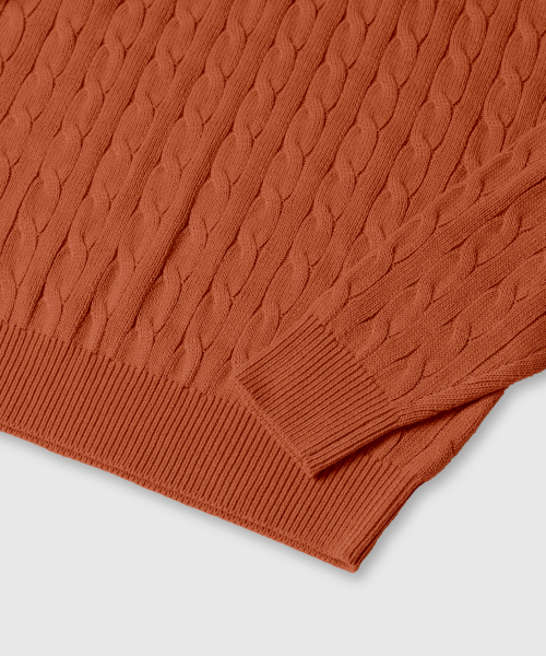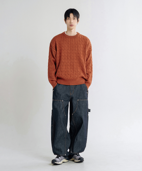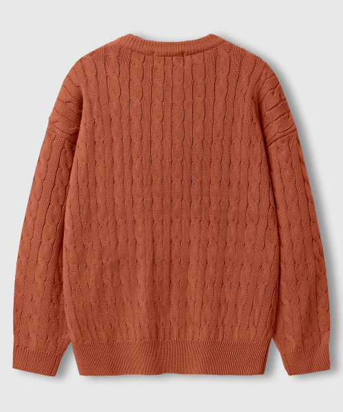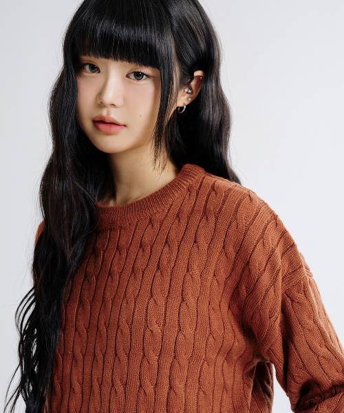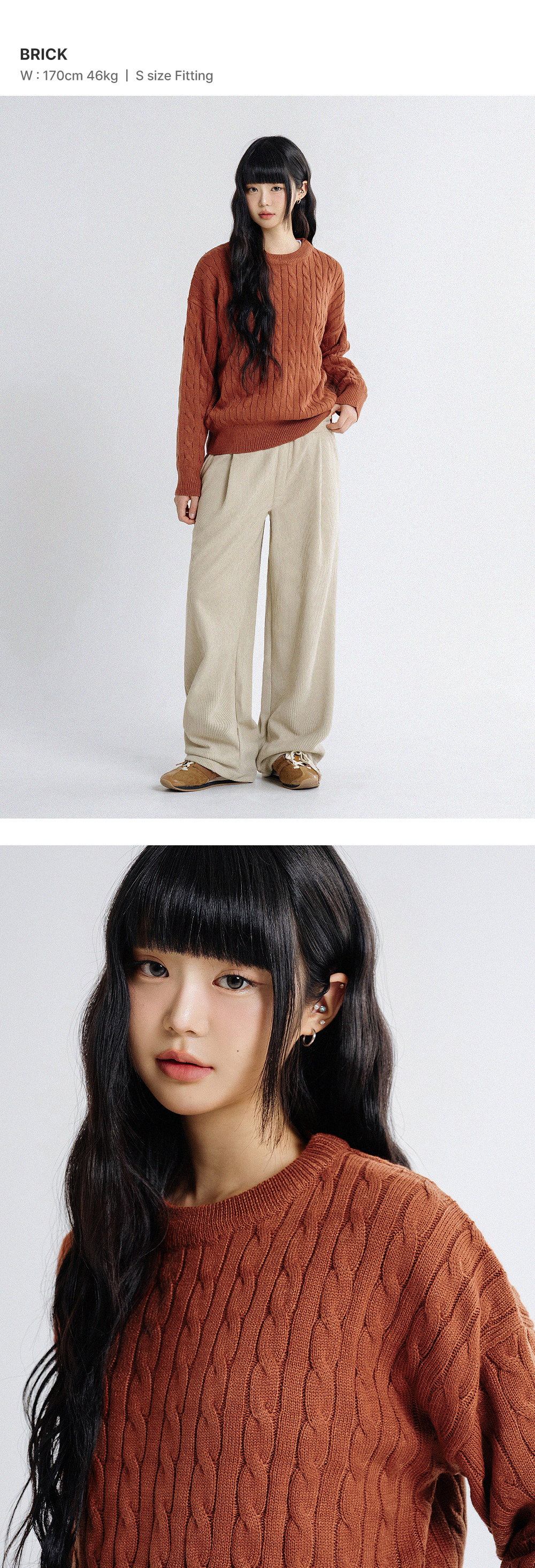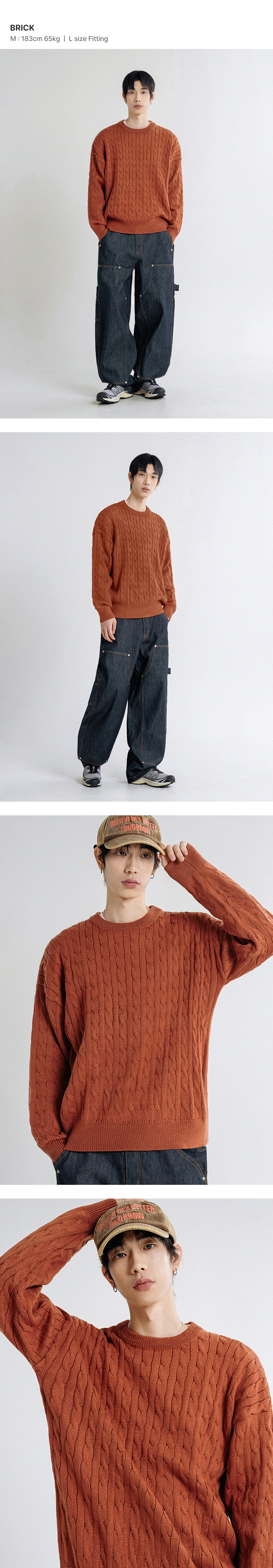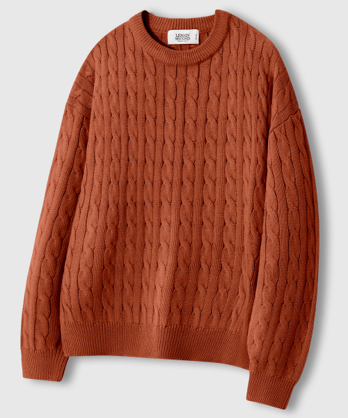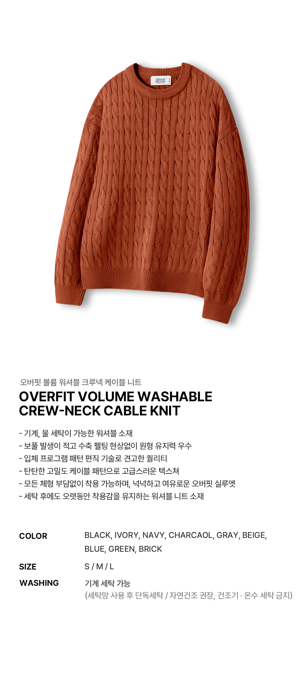 오버핏 볼륨 워셔블 크루넥 케이블 니트 [브릭]