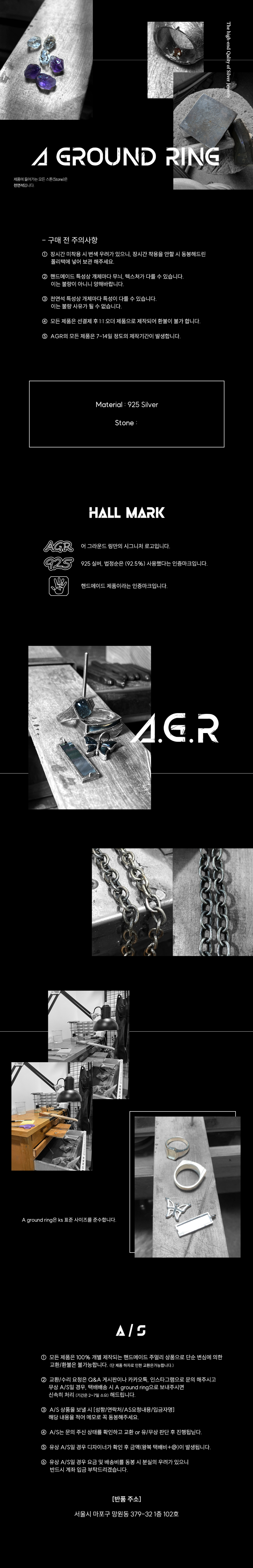 어 그라운드 링(AGROUNDRING)은 유화 처리한 실버 제품을 특유의 스크래치와 빈티지한 디자인에 다이아몬드와 천연석을 세팅한 하이 퀄리티 실버 브랜드입니다.
