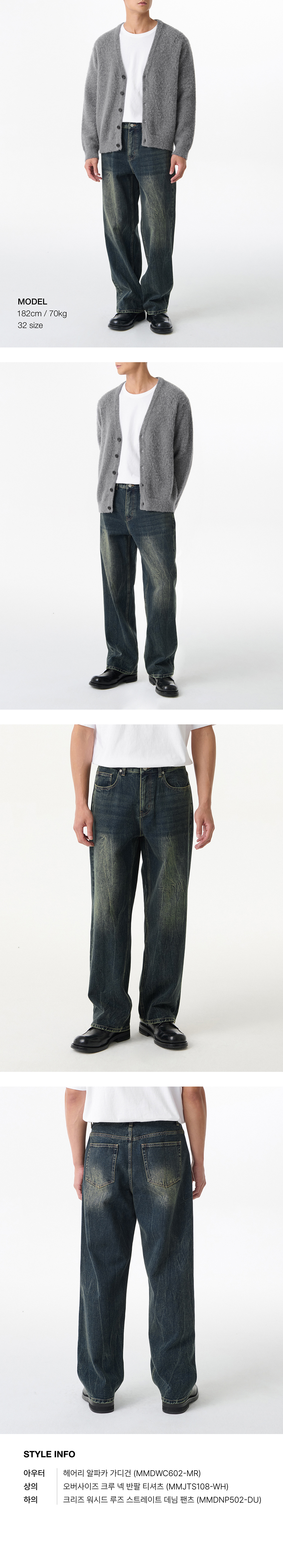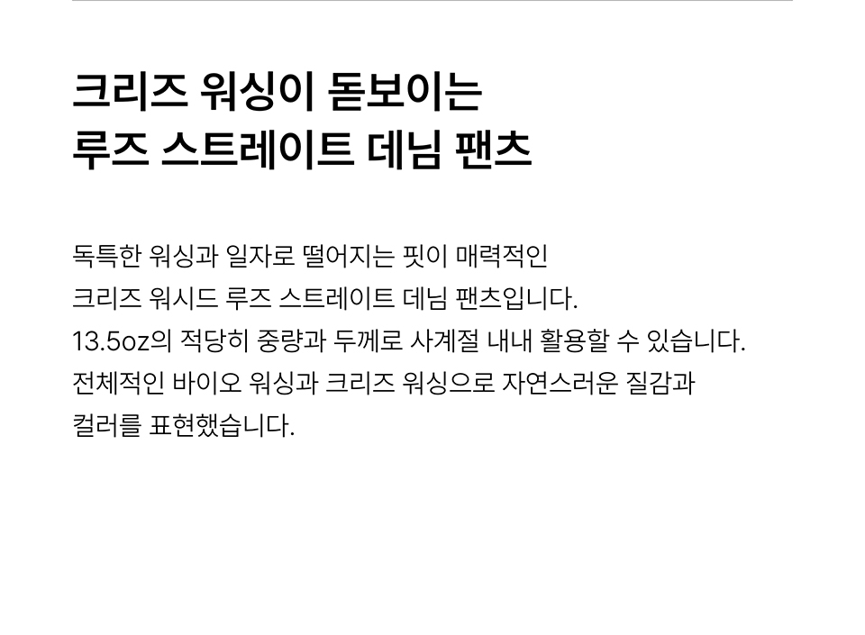 크리즈 워시드 루즈 스트레이트 데님 팬츠 [워시드 블랙]