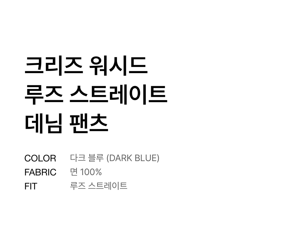 크리즈 워시드 루즈 스트레이트 데님 팬츠 [다크 블루]