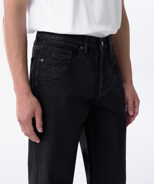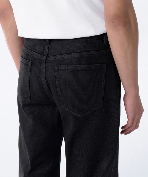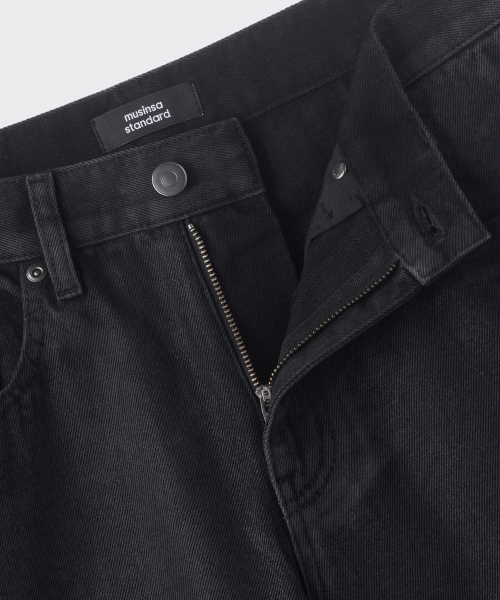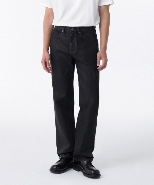 코티드 스트레이트 데님 팬츠 [블랙]