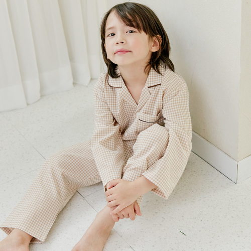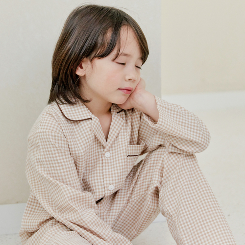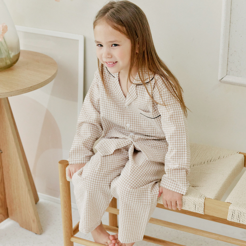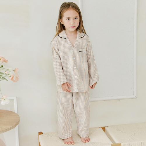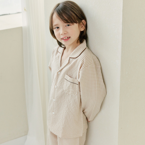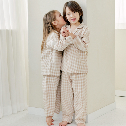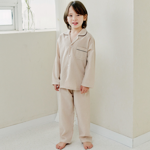 109 브라운체크 긴소매 파자마세트
