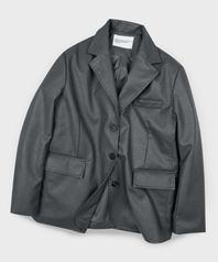 비건 크랙 오버핏 싱글 버튼 블레이저 레더 자켓 [그레이]