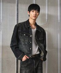 버번 데님 트러커 자켓 벨벳틴 블랙
