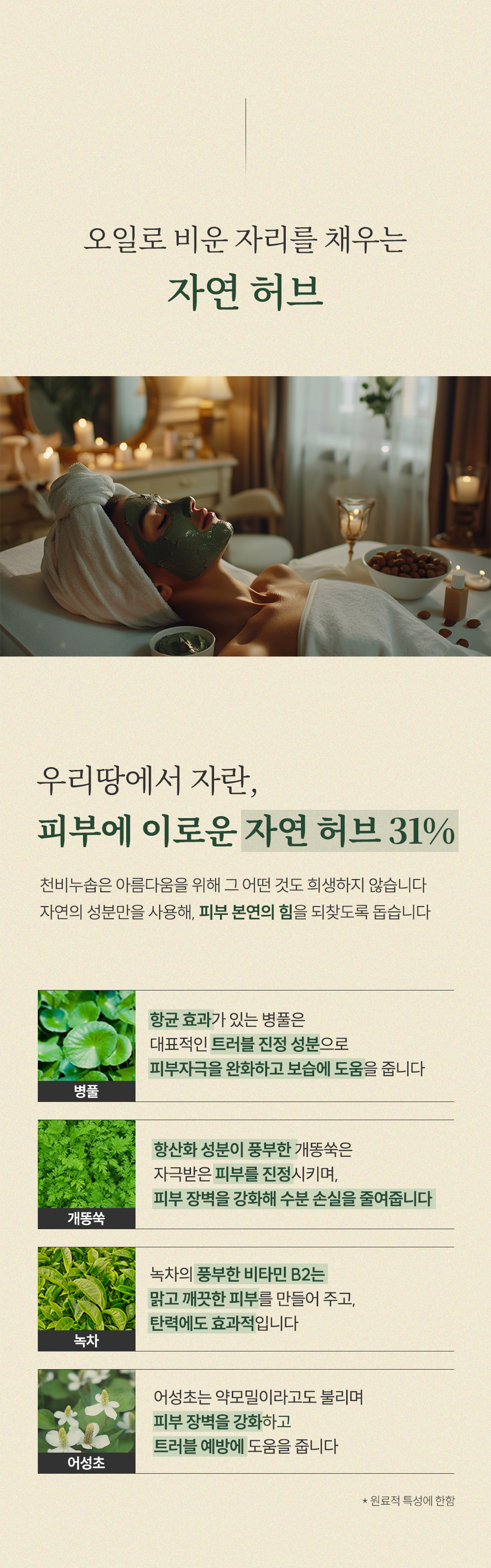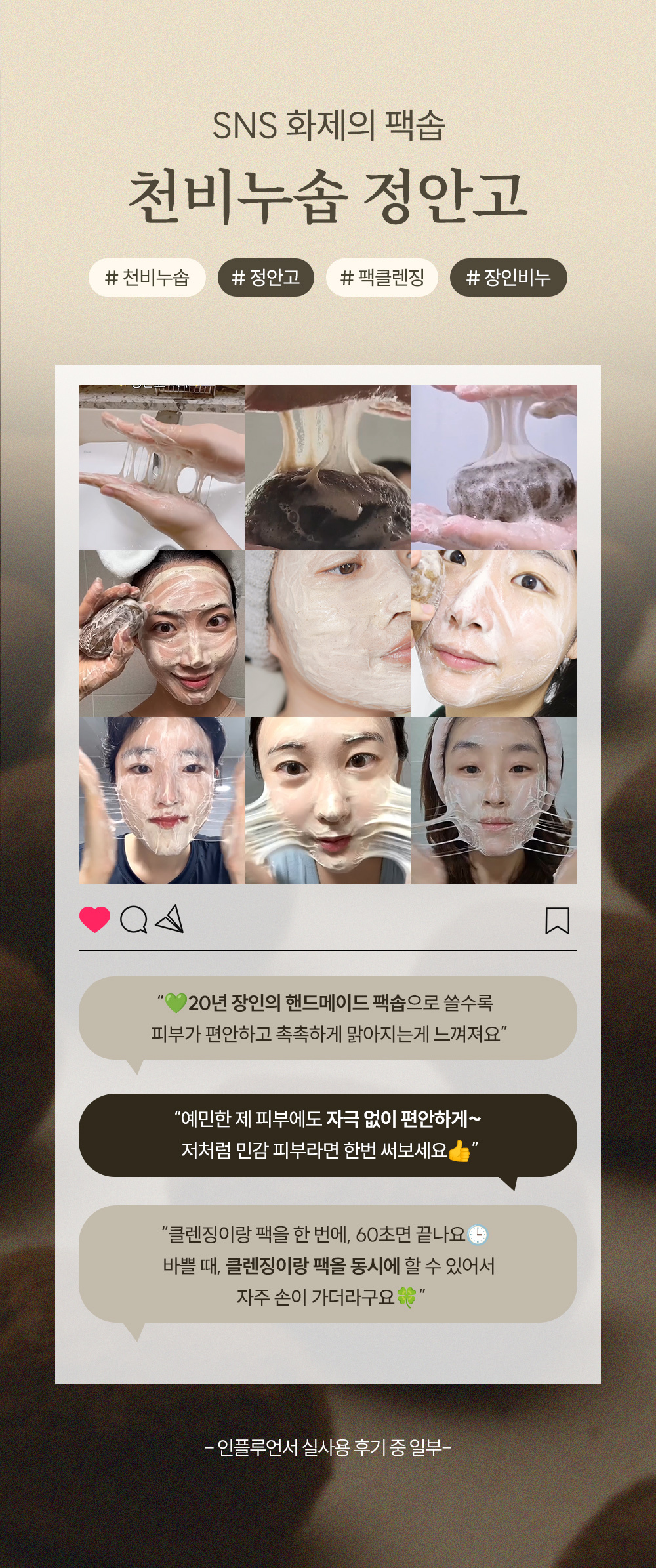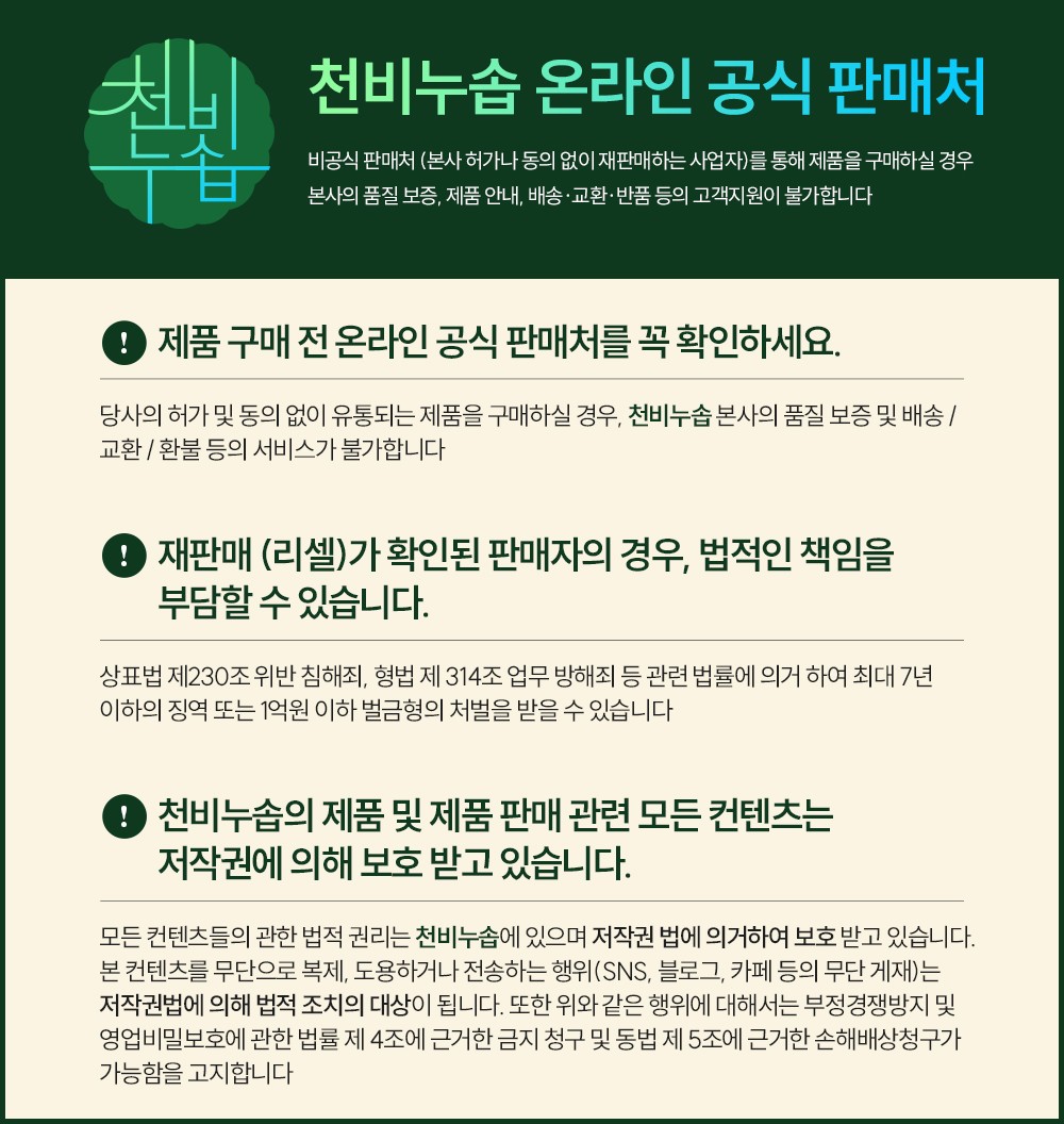 천비누솝(CHEONBINUSOAP)은 우리에게 매일 놀라운 아름다움을 선사하는 자연에 대한 깊은 고찰을 시작으로, 효능과 안정성을 고려해 성분부터 섬세한 제품들을 선보이는 브랜드입니다.