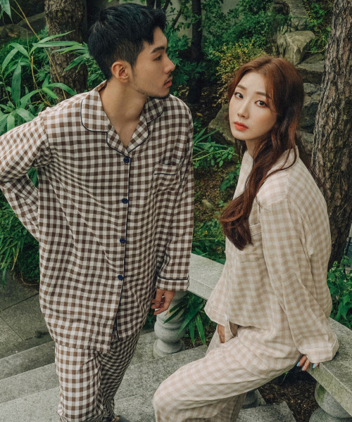 남녀공용 커플 베이직 깅엄체크 9부 파자마 바지