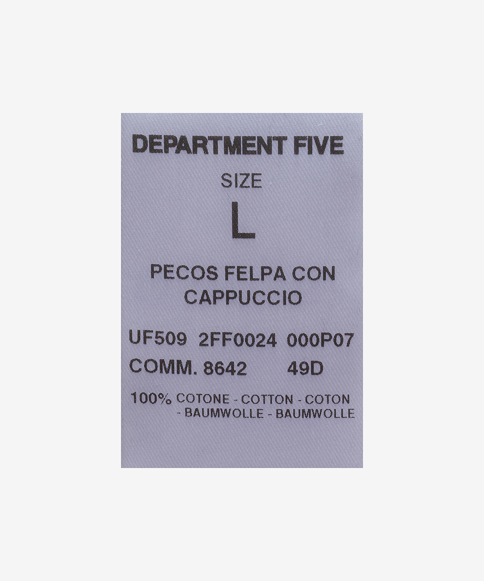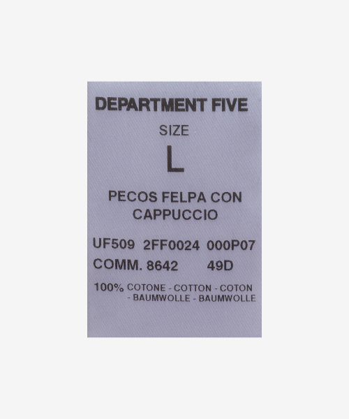디파트먼트 파이브(DEPARTMENT FIVE)는 Mario Cangini and Nicola Silvagni가 2007년 설립한 젊고 쿨한 데님 브랜드로, 100% 이탈리아 제조를 고집하여 우수한 퀄리티를 담보합니다. 밀리터리 웨어와 워크 웨어의 높은 기능성 데님을 자유분방한 록(rock) 무드와 유행을 앞서가는 실루엣으로 표현합니다.