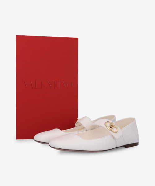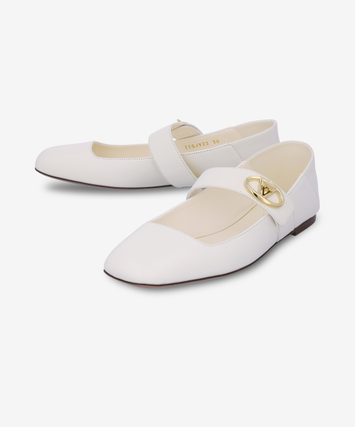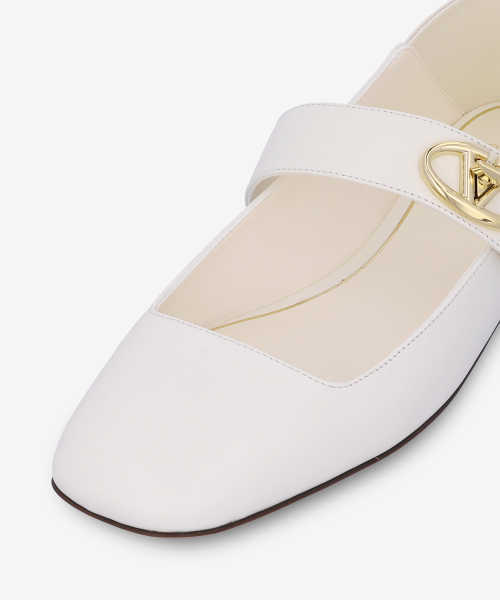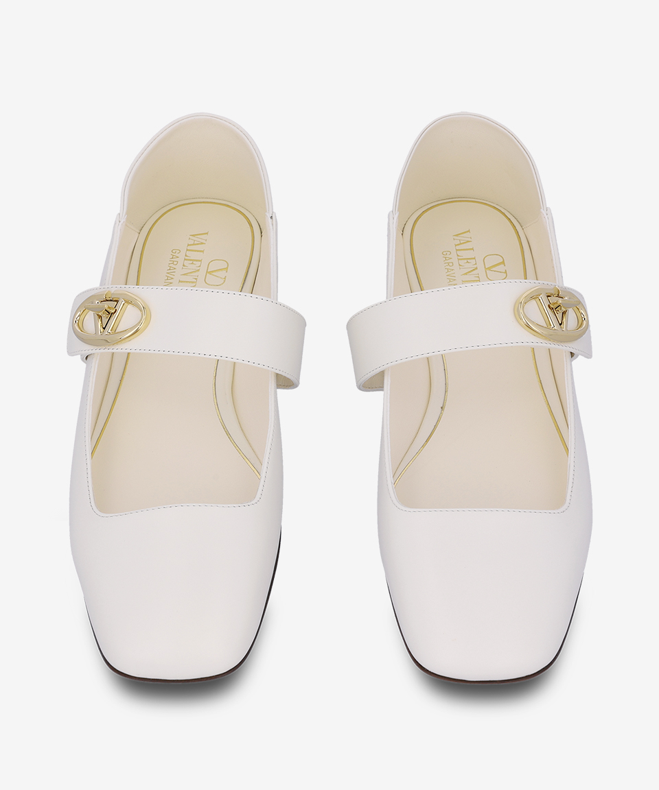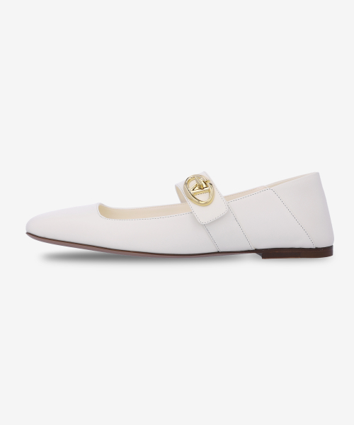 V로고 락커 메리제인 발레리나 플랫 슈즈 - 아이보리 / 5W2S0JV2EEY098