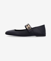V로고 락커 메리제인 발레리나 플랫 슈즈 - 블랙 / 5W2S0JV2EEY0NO