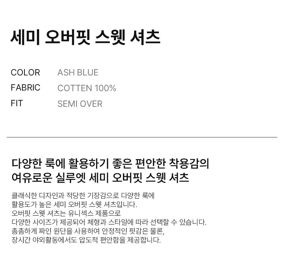 세미 오버핏 스웻 셔츠 [ASH BLUE]