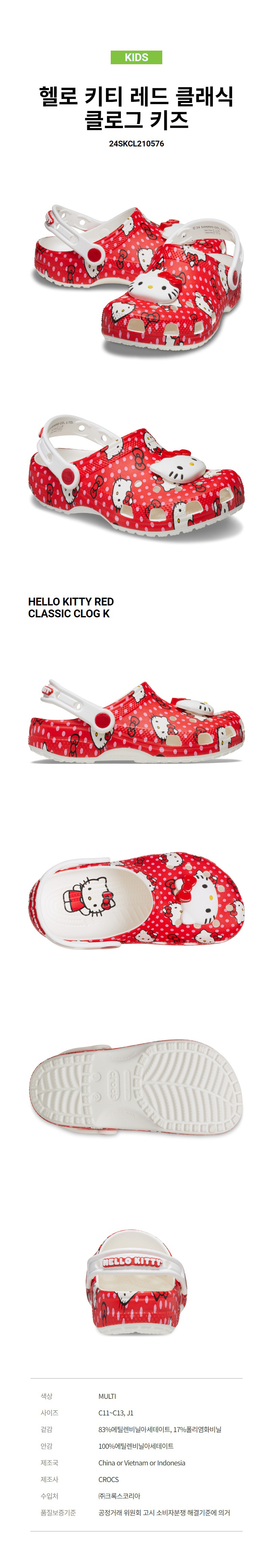 키즈 헬로 키티 레드 클래식 클로그 MUL (24SKCL210576)