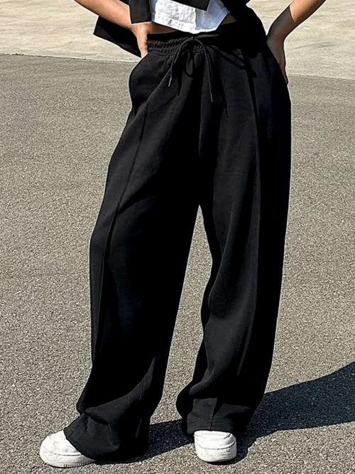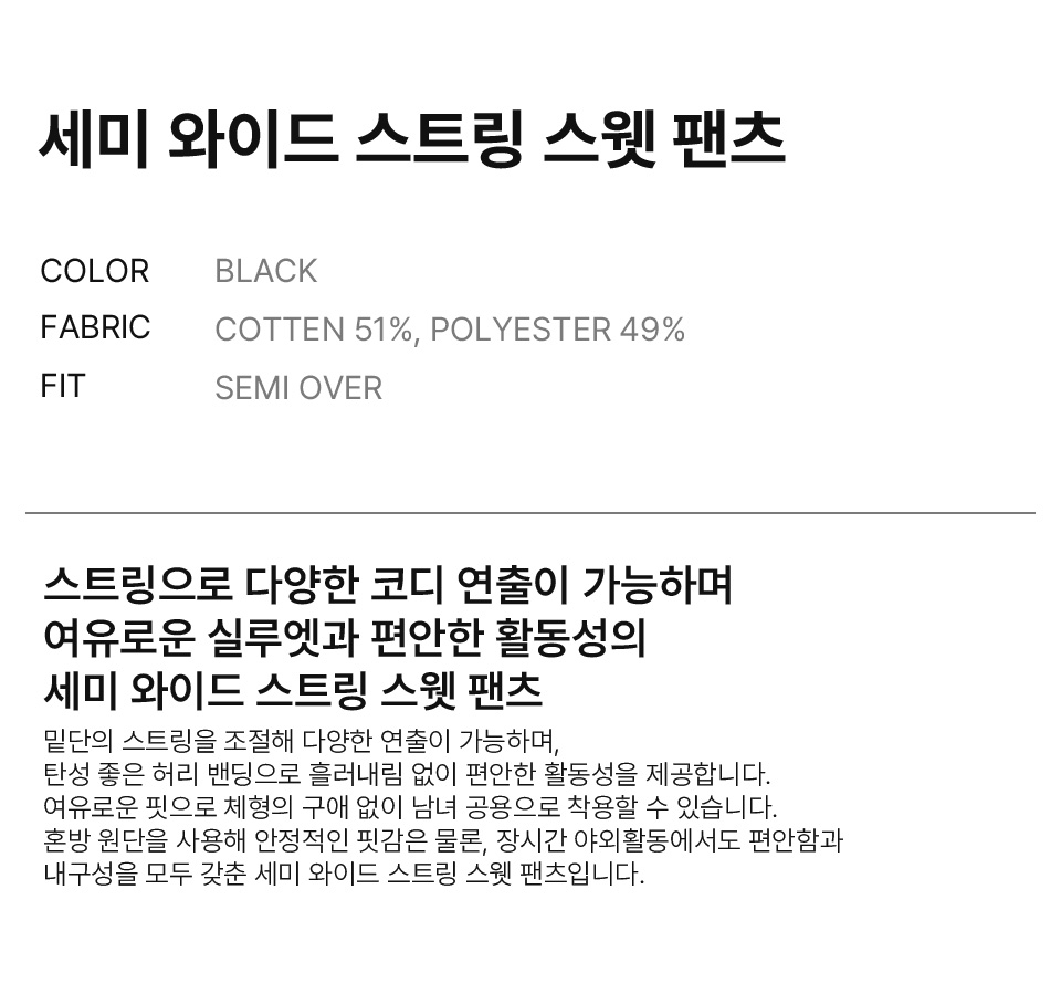세미 와이드 스트링 스웻 팬츠 [BLACK]