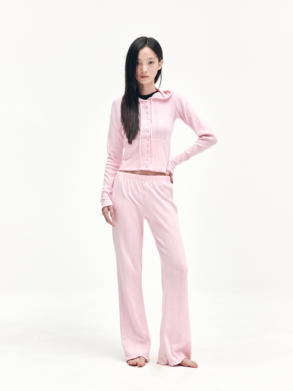 EYELET BOOTSCUT PANTS PINK