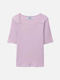 라인 스퀘어넥 티셔츠_연보라