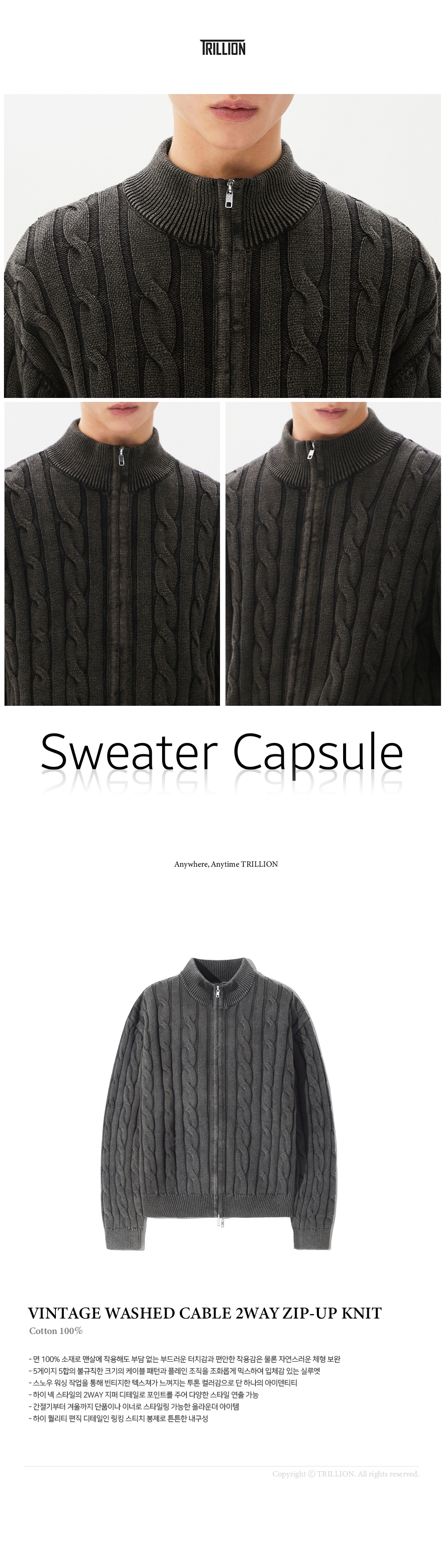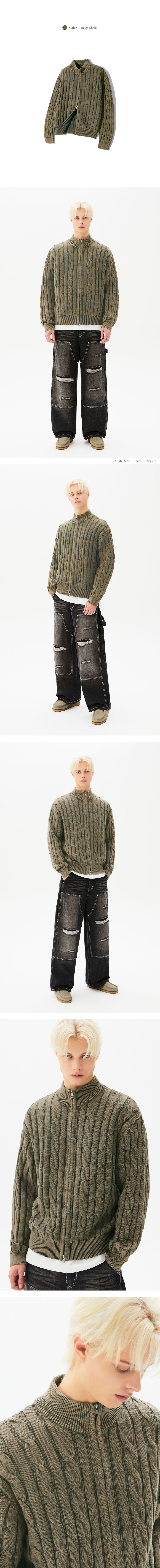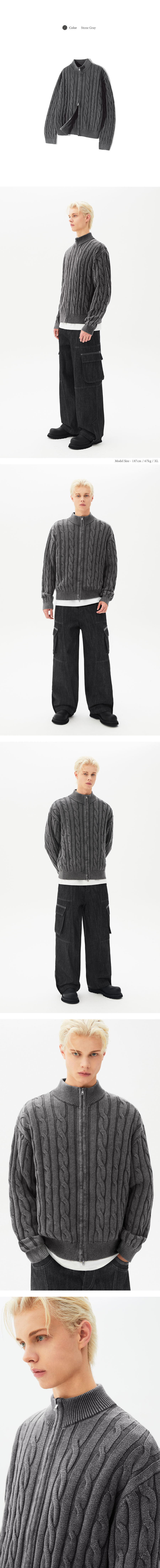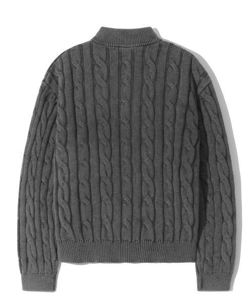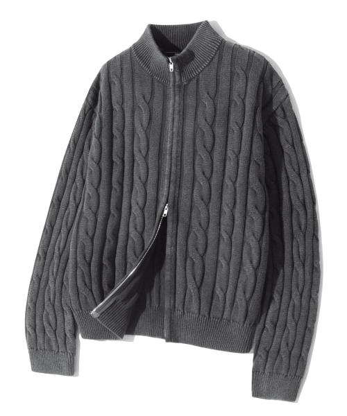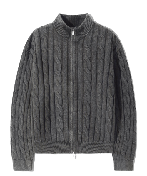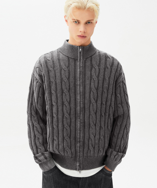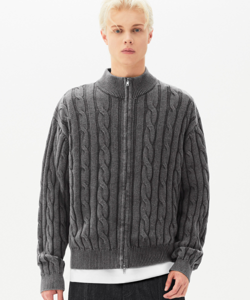 빈티지 워싱 케이블 2WAY 집업 니트 (STONE GRAY)