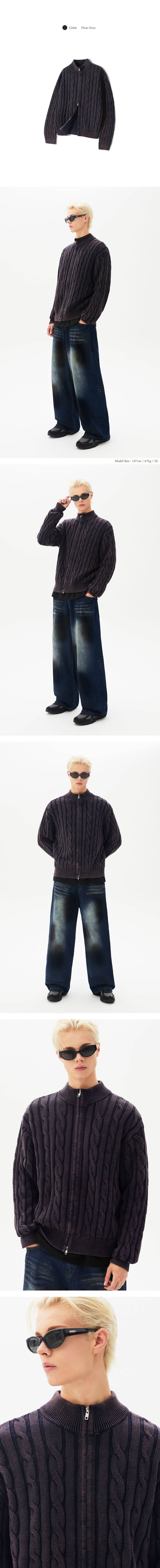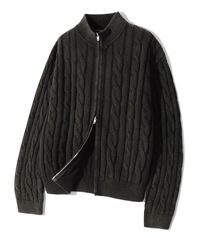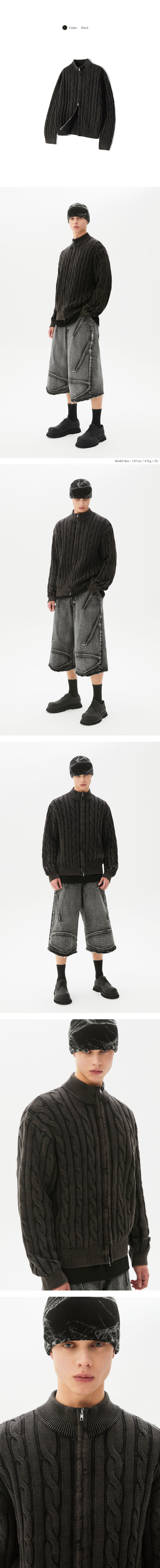 빈티지 워싱 케이블 2WAY 집업 니트 (BLACK)