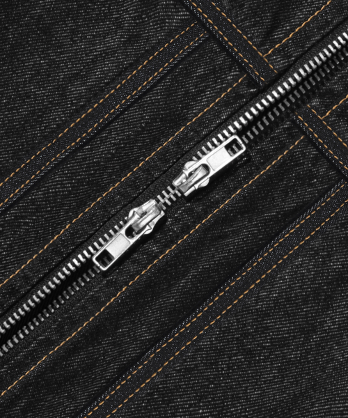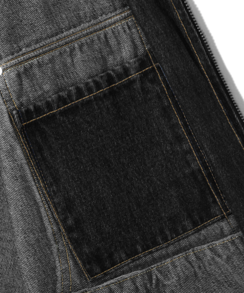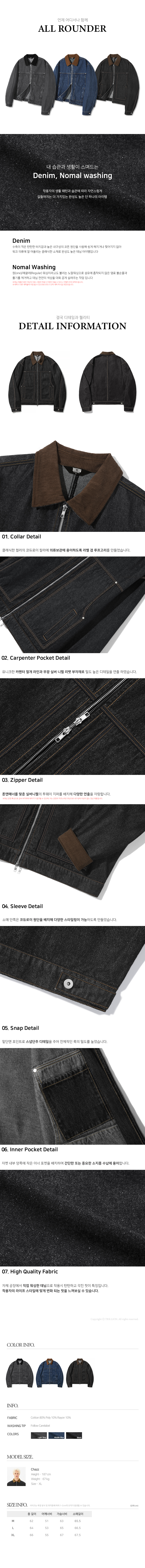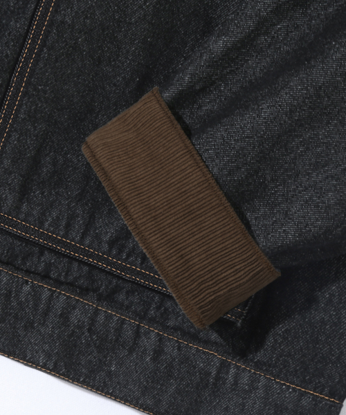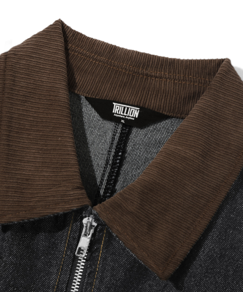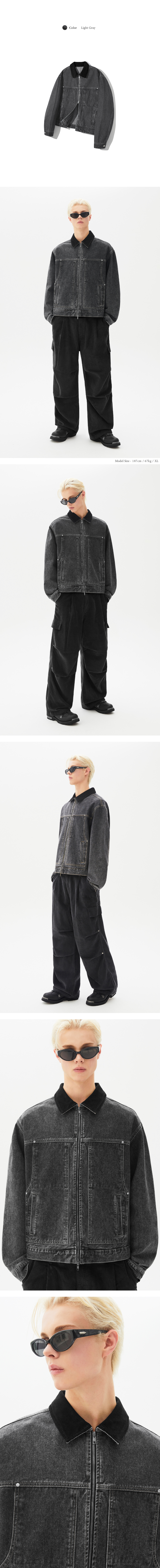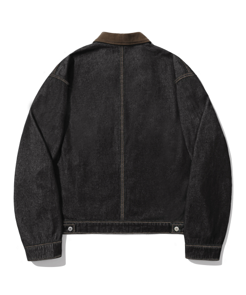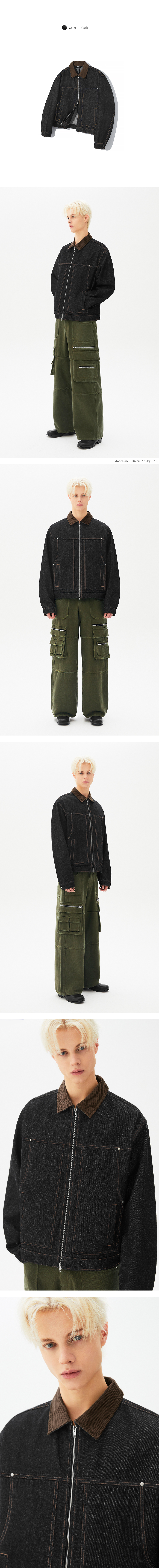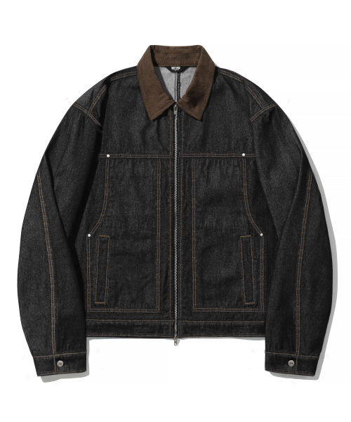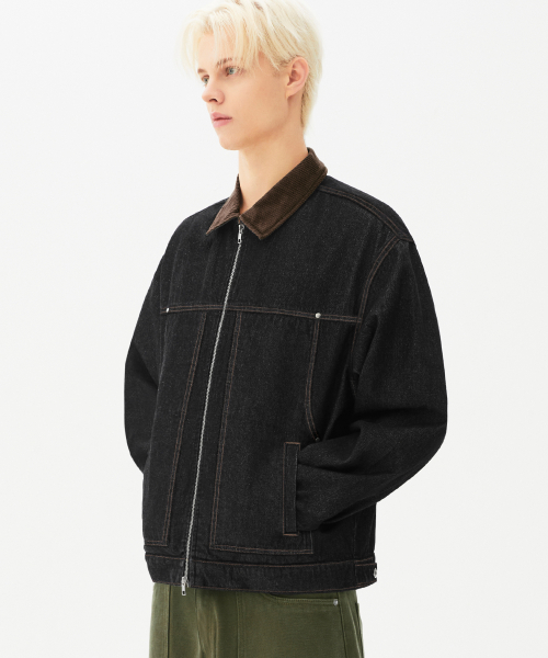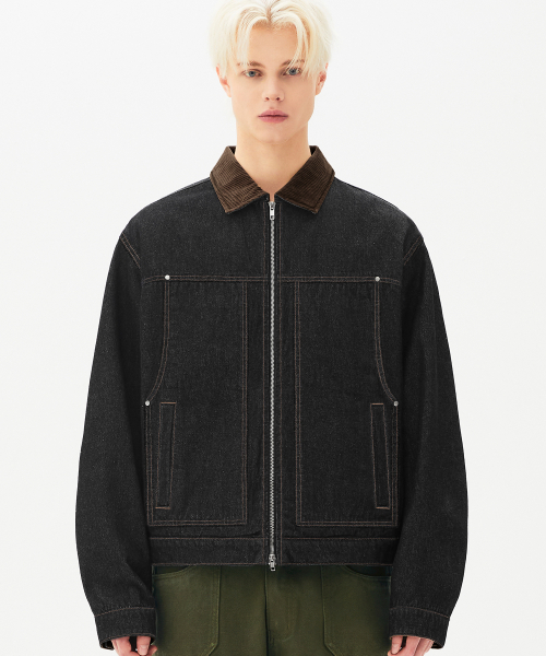 코듀로이 카라 데님 집업 워크 자켓 (BLACK)