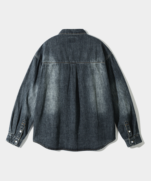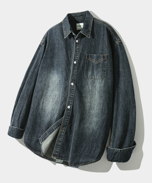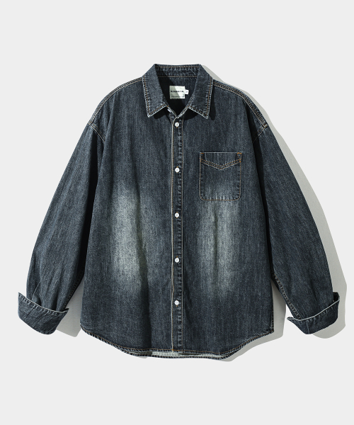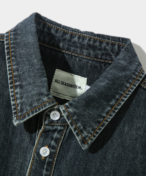 ASI 에센셜 바이오워싱 데님 셔츠_빈티지 블랙