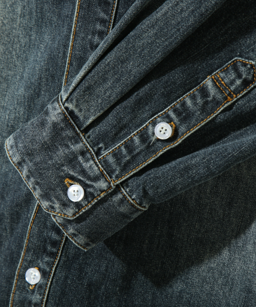 ASI 에센셜 바이오워싱 데님 셔츠_더스트 인디고