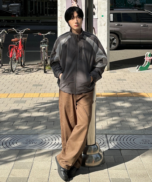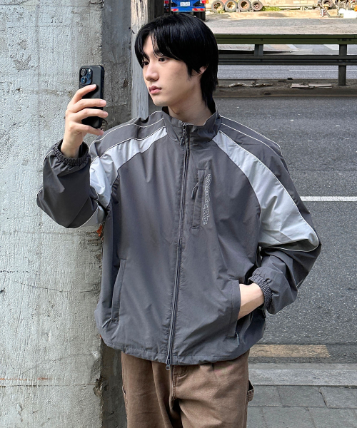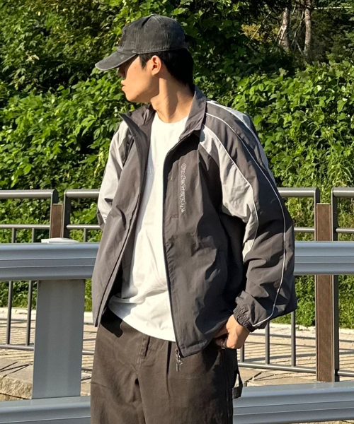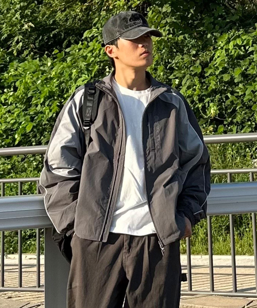 배색 테크 숏 자켓_차콜BDF 셋업