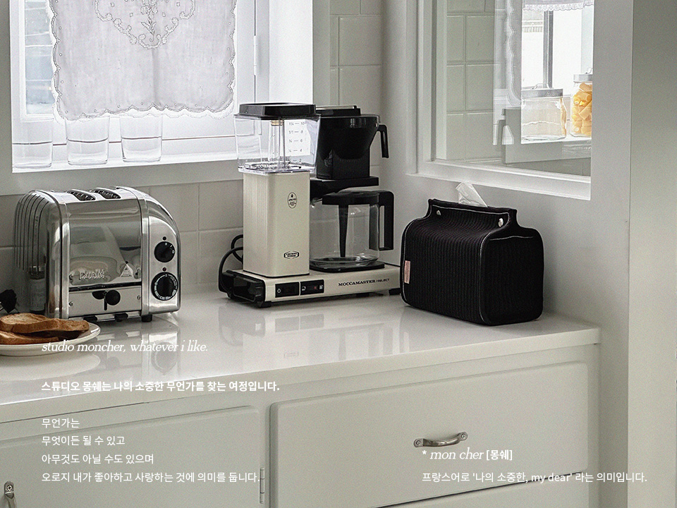 스튜디오 몽쉐(STUDIOMONCHER)는 소중한 무언가를 찾는 여정으로, 패브릭 소재를 활용해 감각적인 디자인 상품을 풀어가는 브랜드입니다.
