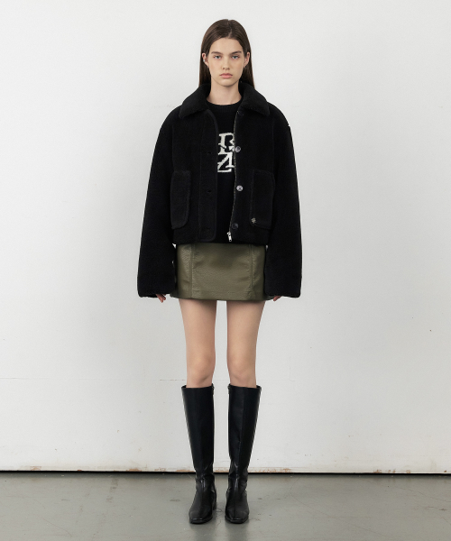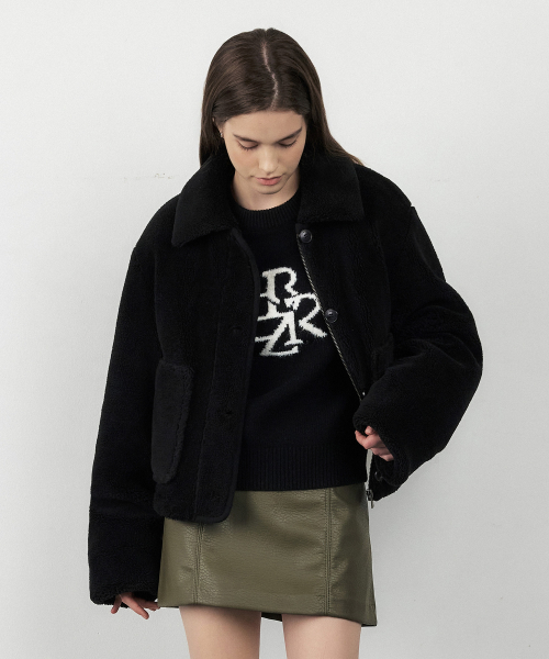 루즈핏 사선 절개 싱글 자켓_BLACK