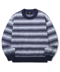 워셔블 그라데이션 스트라이프 크루넥 니트_네이비
