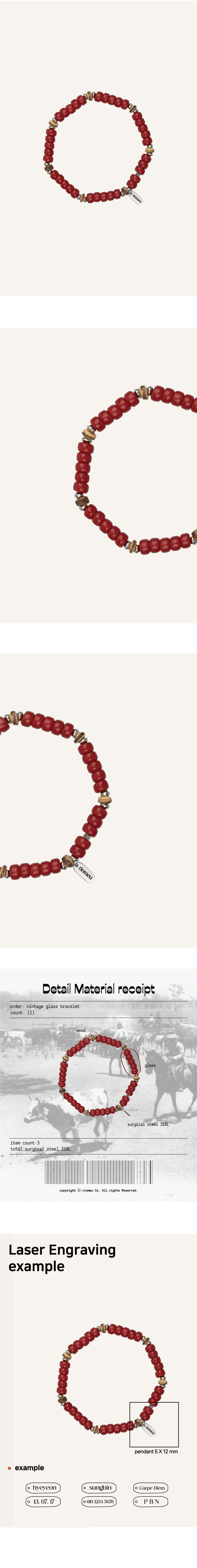 빈티지 유리 레드 팔찌: RADIANT024