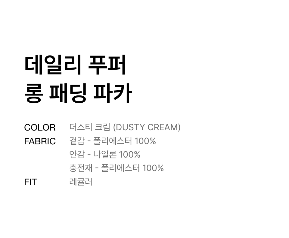 데일리 푸퍼 롱 패딩 파카 [더스티 크림]