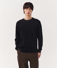 와플 베이식 크루 넥 긴소매 티셔츠 [블랙]