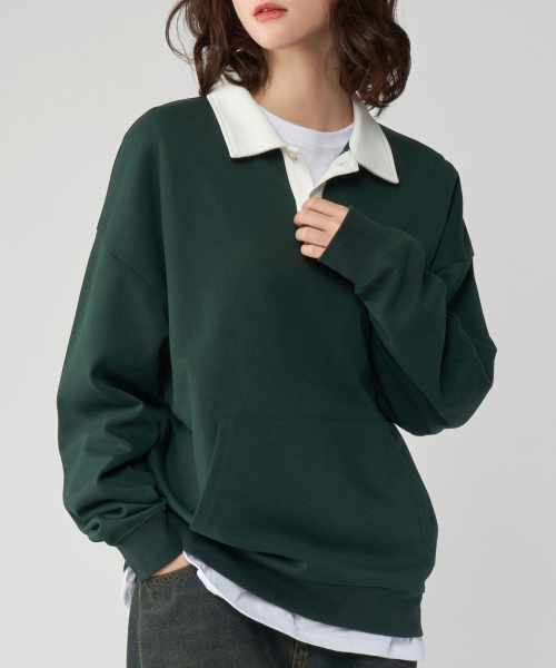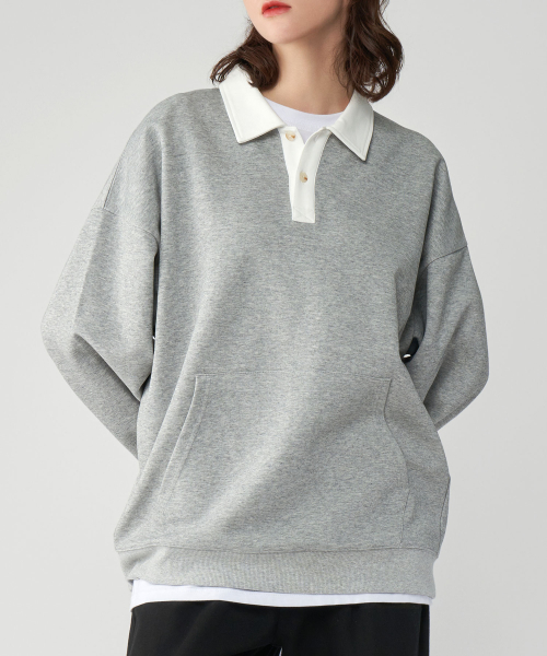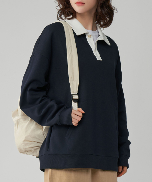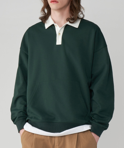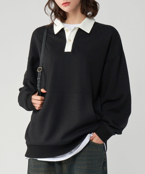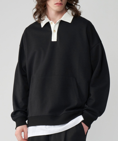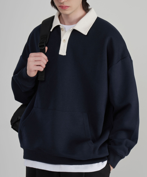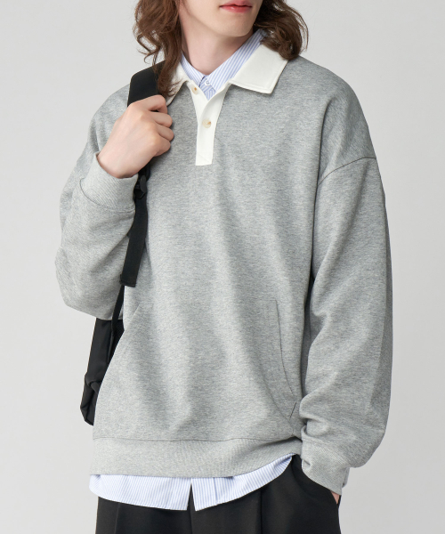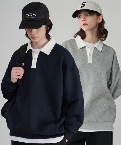 [기모버전 추가]시티보이 오버핏 럭비 카라 맨투맨 스웻 티셔츠 4COLOR