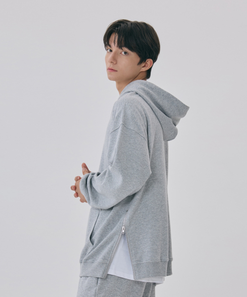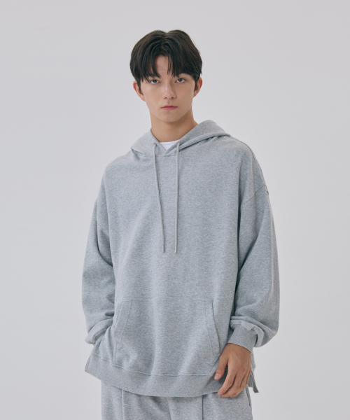 에센셜 오버핏 절개 스웻 후드 [헤더 그레이]