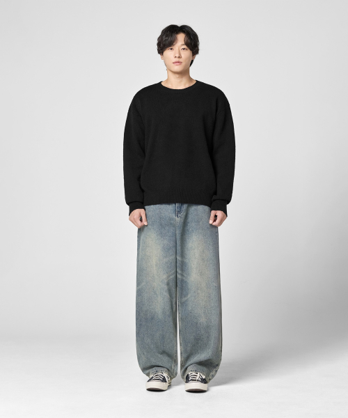 시그니처 데일리 크루넥 니트 [블랙]