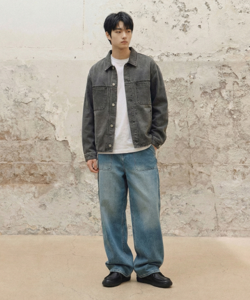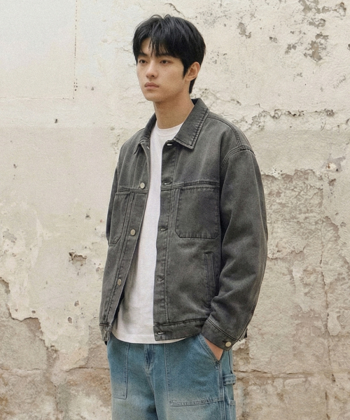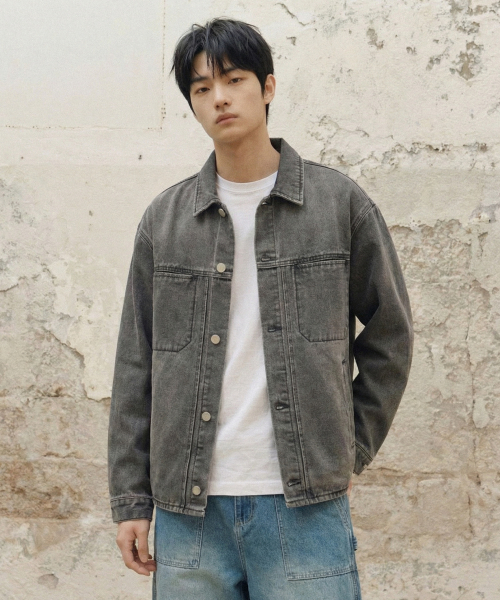 스톤 워싱 크롭 데님 자켓 [그레이]