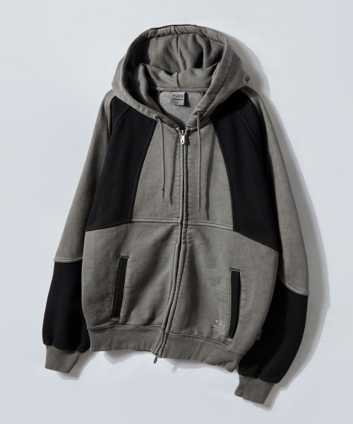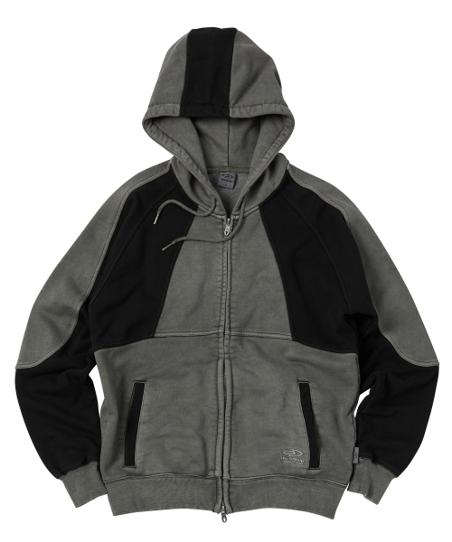 피그먼트 컬러 블록 후드 집업 자켓 블랙 차콜