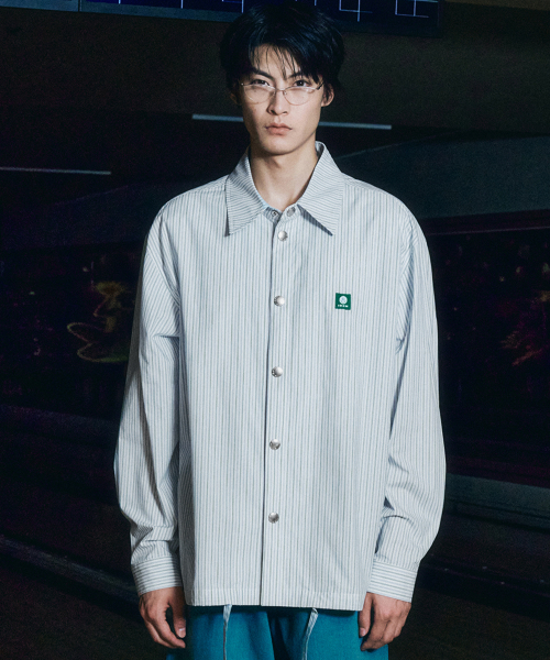 스트라이프 코튼 패브릭의 아우터형 셔츠