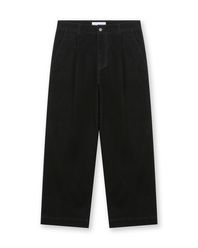 VELVET DENIM ONE TUCK CURVED PANTS BLACK