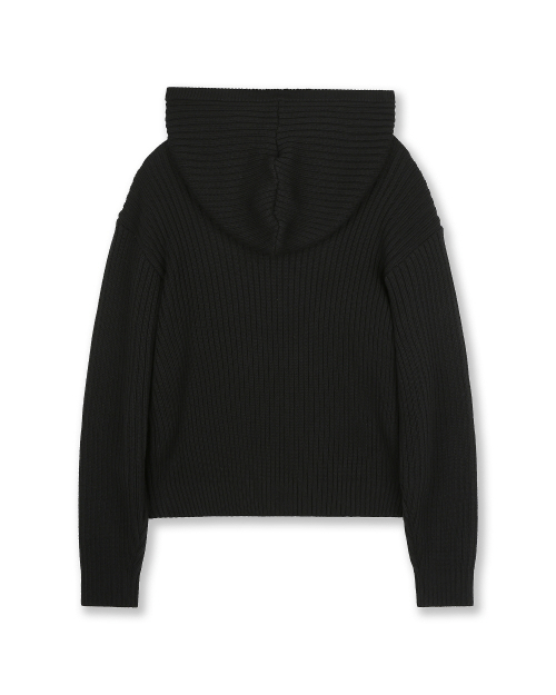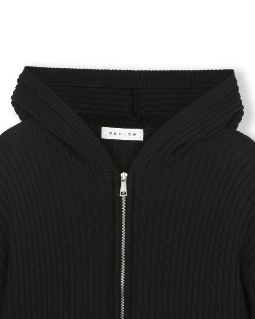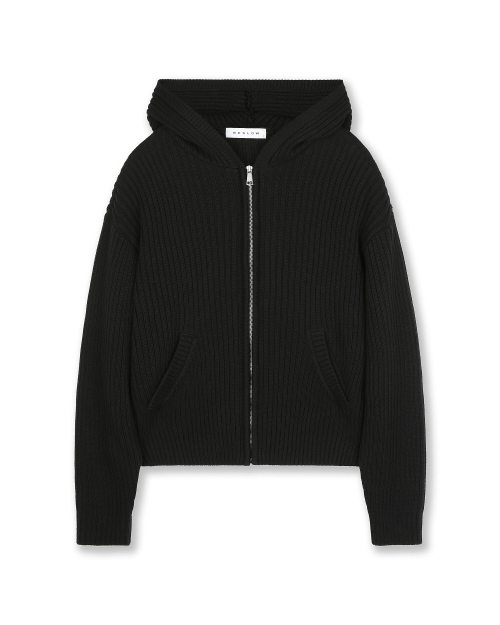 OVERSIZED HOOD KNIT ZIP UP BLACK