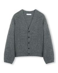 [비슬로우X패션튜브삭형]BRUSHED V NECK SHORT CARDIGAN CHARCOAL