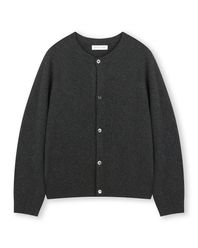 CASHMERE BLENDED CREW NECK CARDIGAN MELANGE CHARCOAL