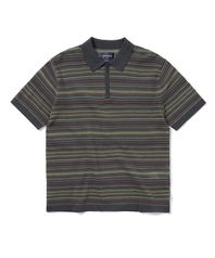 Striped S/S Knit Polo Grey