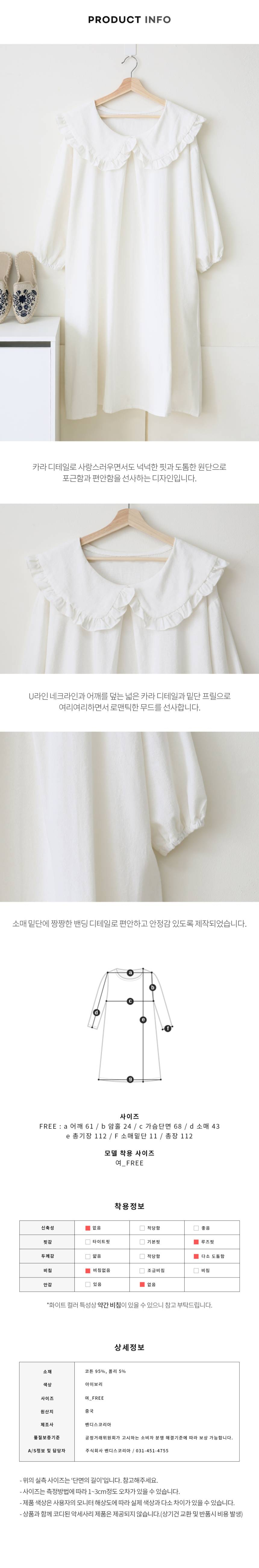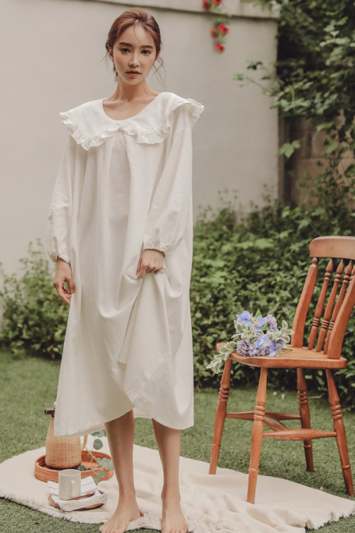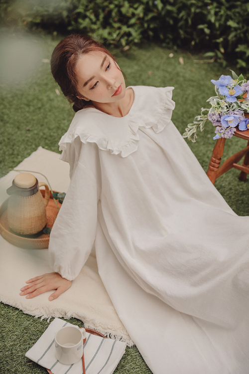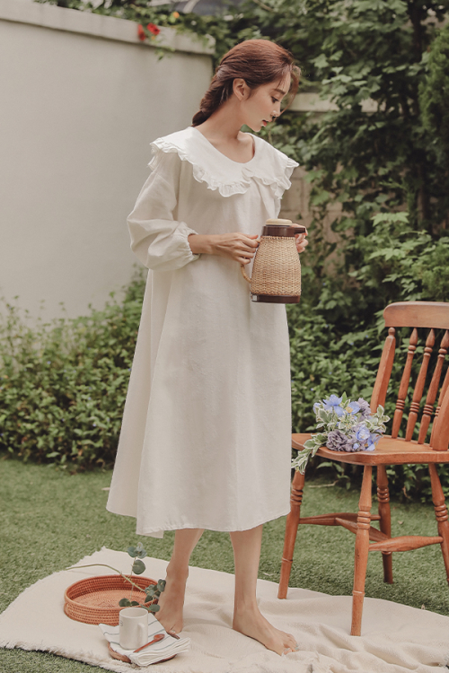 내추럴코튼 무지 반팔 원피스 홈웨어
