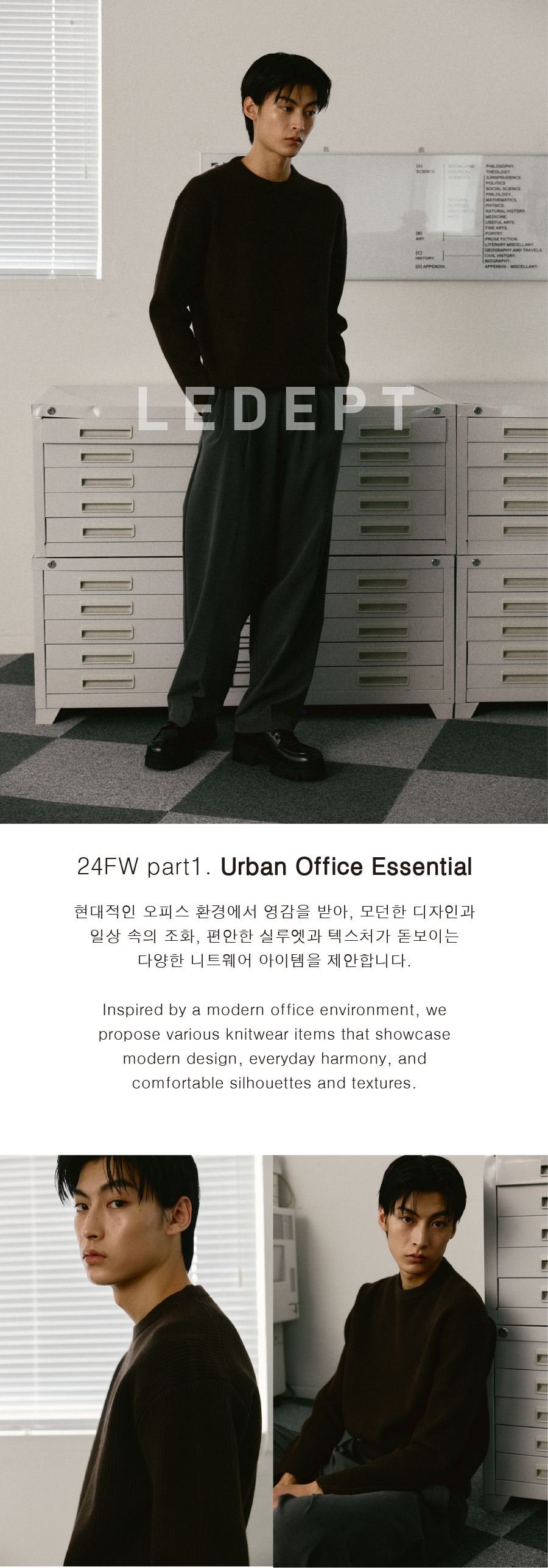 르뎁트(LEDEPT)는 '메이크 가먼트 신세리티'라는 슬로건으로, 완성도 높은 퀄리티로 지속 가능한 제품을 제안하는 브랜드입니다. 실용성 있는 스타일로 단순하지만 활용도 높으며, 유행에 편승하지 않는 본질적인 디자인을 선보입니다.