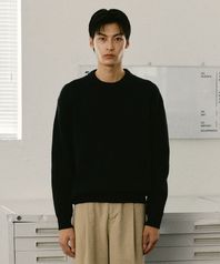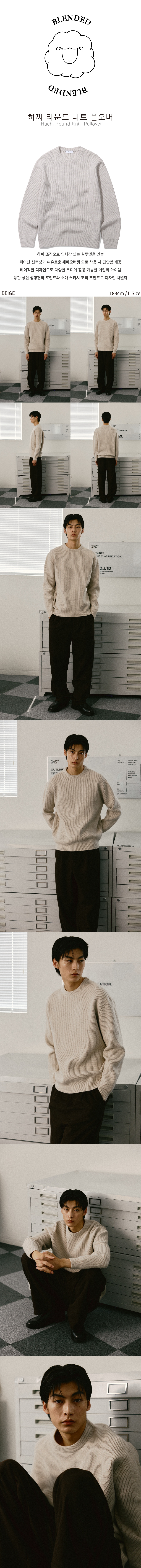 캐시미어 블렌딩 하찌 라운드 니트 풀오버 [그레이]