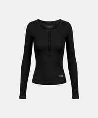 BS Cotton Jersey Fitted Henley Neck Long Sleeve T-Shirt - Black