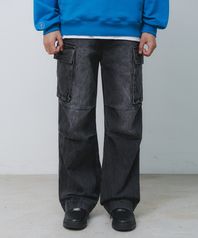 데님 카고 와이드 팬츠 BK8925_블랙